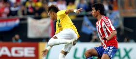 A torcida brasileira respondeu, com berros de "pentacampeão", e a equipe amarela começou a criar as suas primeiras chances mais claras de gol. Aos 26 minutos, a zaga paraguaia bobeou, Robinho ficou com a bola e passou para Neymar. O atacante do Santos (que despertava gritos histéricos todas as vezes em que aparecia no jogo) chutou para fora, perto do alvo.