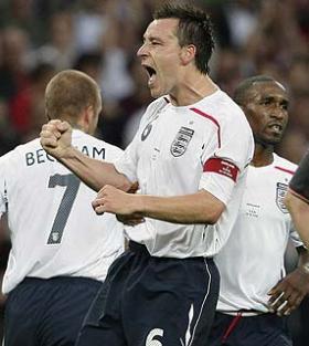 Uma semana após ter despediçado um pênalti que poderia dar o título da Copa dos Campeões ao Chelsea contra o rival Manchester United, o zagueiro John Terry balançou as redes da seleção dos Estados Unidos nesta quarta-feira e abriu o caminho para a vitória tranqüila da Inglaterra por 2 a 0, em amistoso realizado no Estádio de Wembley (foto).