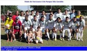 No final, a vitória pelo placar de 2 a 0 deu o título da competição a equipe do Parque São Geraldo (foto) Rafael Alves abriu o placar aos 20 minutos da primeira etapa após receber já dentro da área e tocar par ao gol. No segundo tempo, e William Henrique ampliou a vantagem aos 15 minutos da etapa complementar aproveitando uma cobrança de penalidade máxima.