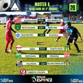A terceira rodada do Campeonato de Master Módulo A, promovido pela Liga Uberabense de Futebol, foi realizada na tarde deste sábado e teve como destaque as goleadas na Chave A e a manutenção dos 100% de aproveitamento de Vila Nova e Arem na Chave B.