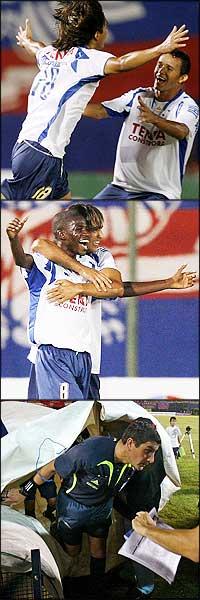 A partida ainda chegou a ser interrompida pelo árbitro chileno quando pedras começaram a ser atiradas na área do goleiro Fábio pelos torcedores cerristas. Duas delas foram retiradas pelo juiz.