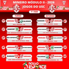 A Federação Mineira de Futebol (FMF) divulgou a tabela detalhada da primeira fase do Campeonato Mineiro Módulo II de 2026, com confrontos, **datas e horários dos jogos do Uberaba Sport Club — competição que começa 30 de maio e vai até 15 de agosto de 2026.