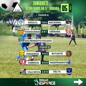 Foi realizada na manhã deste domingo (05/04) a quinta e última rodada da primeira fase do Campeonato de Júnior, promovido pela Liga Uberabense de Futebol. Ao fim da rodada, ficaram definidos os oito clubes que seguem na disputa pelo título.